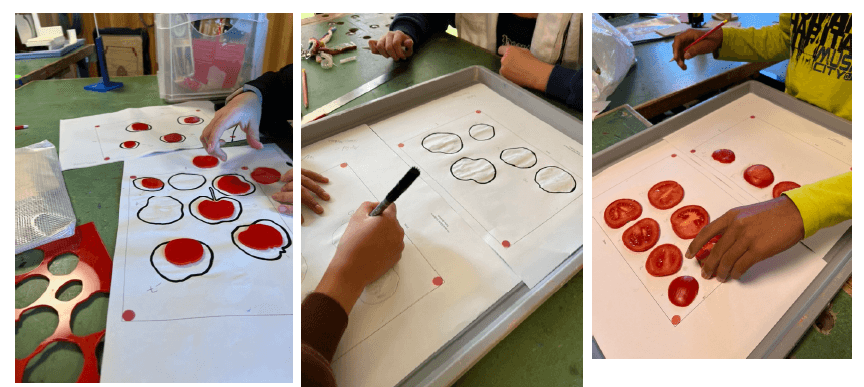 - Making-Idee: Verschiedene Früchte und Gemüse (z.B. Äpfel, Bananen, Paprika) wurden in Scheiben geschnitten und eingescannt. Die einzelnen Teile wurden dann mit dem Lasercutter ausgeschnitten und wieder zu Früchten zusammengesetzt. In einer Folge könnten diese mit LED-Streifen zu Lampen gestaltet werden.